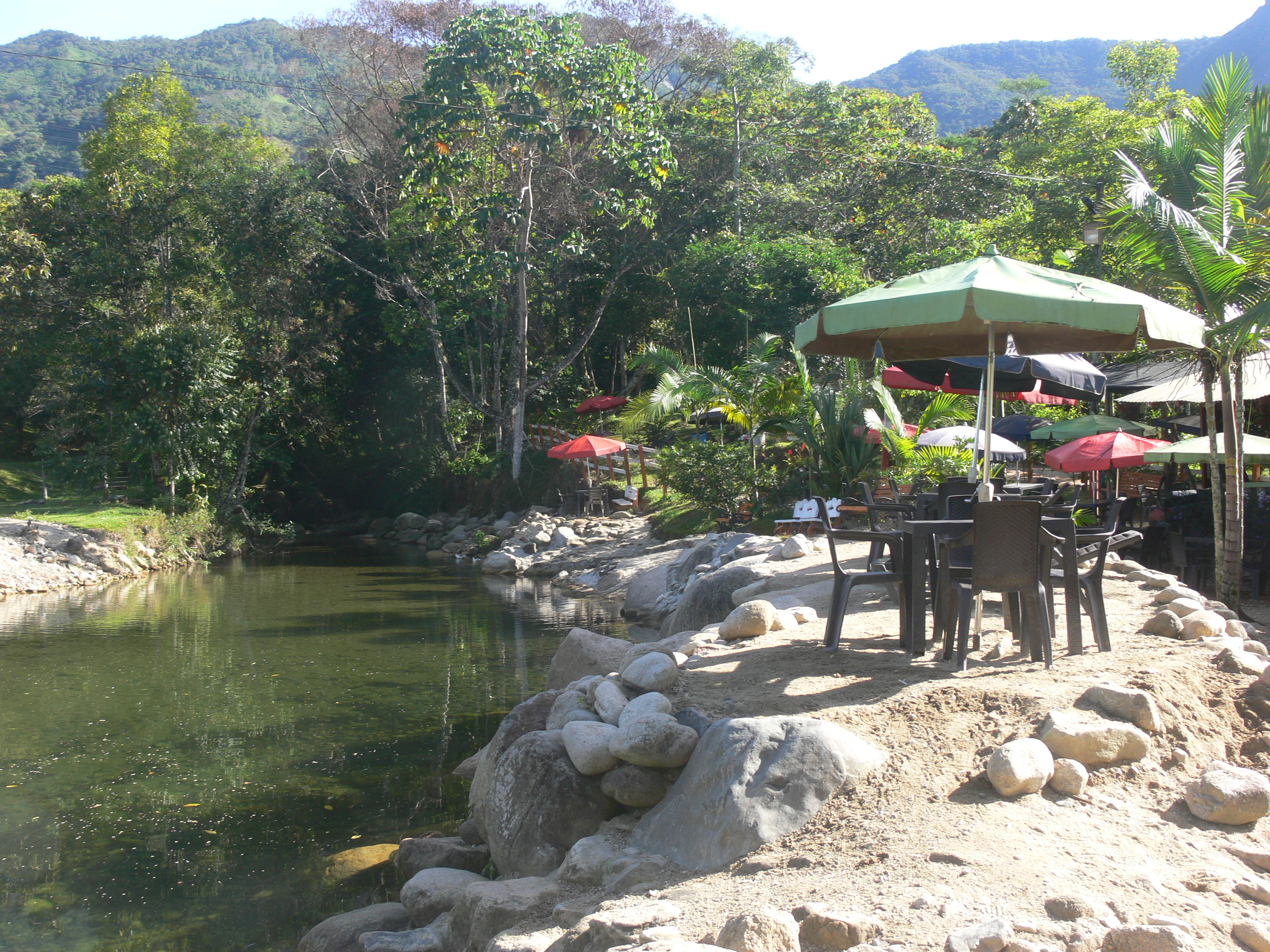 Surprisingly, the weather wasn’t much hotter than Medellin and the nights significantly cooler. One of the locals told us that this was because of the four hydro-electric systems constantly spraying water into the atmosphere, which evaporates after dark. The company running these dams, which produce 20% of Colombia’s power needs, created a path along the river, facilitating access to another beautiful waterfall, but unfortunately, that makes it very crowded, so we chose to swim in a waterhole further downstream.