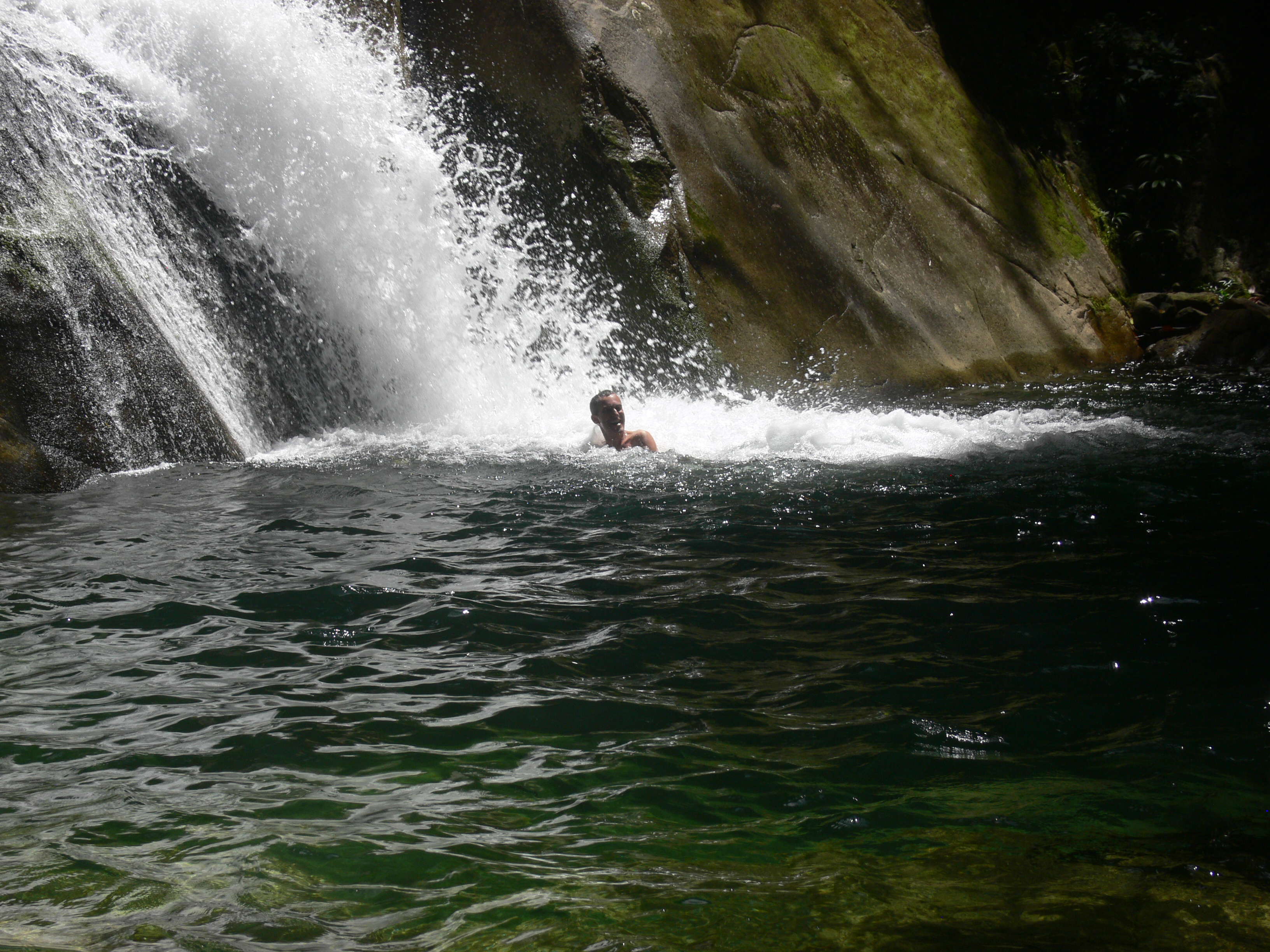 We decided to spend our anniversary weekend away, and Sandra had heard of a town to the west surrounded by waterfalls. We arrived at our B&B late on Friday night, lucky to have found a tuktuk when we got off the bus, because they normally stop running at 10pm. The driver, as everyone we met, was very friendly and helpful, making sure we reached our home despite poor directions from the host and despite our road being closed. Ernesto, the host’s husband, was waiting for us and delighted in recommending which waterfalls to spend our time on. Top of the list was El Chispero, which is the fall you can see me swimming under. The water was cold, but we needed the refreshing dunk as a respite from the tropical heat.